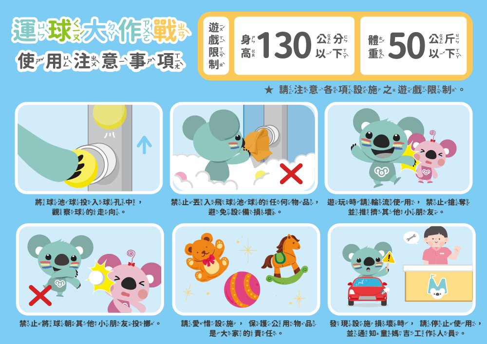 遊玩時請輪流使用,禁止搶奪推擠其他小朋友。